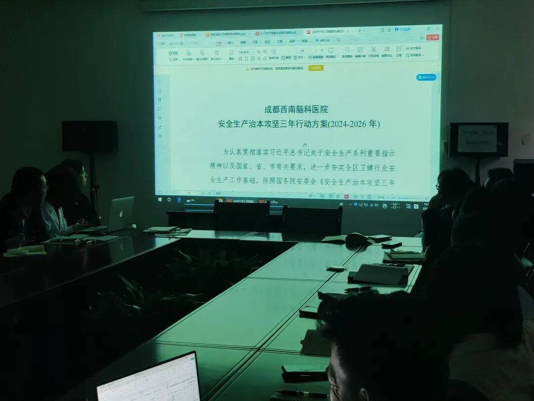 随后,全体参会人员再次深入学习了习近平总书记关于安全生产的重要指示精神,以及医疗机构重大事故隐患判定清单、成都西南脑科医院安全生产治本攻坚三年行动方案(2024-2026 年)、成都西南脑科医院“微网实格”“蓉义卫”最小应急单元实施方案、安全生产有奖举报等制度性文件。通过学习这些文件及相关总结,安委会成员对当前安全生产形势有了更清晰的认识,为后续工作的开展奠定了坚实基础。